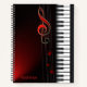 Beautiful black and white piano and gradient red and black treble clef. Optional monogram