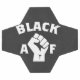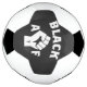 Bold social justice themed soccer ball features white "Black AF" text with closed fist - a symbol for the Black Lives Matter / protest / activism / social injustice.