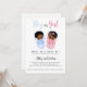 Celebrate your special moment with this charming gender reveal invitation featuring two sweet African American babies wrapped snugly in pink and blue blankets. The editable text lets you personalise names and dates for a truly unique invite. Perfect for gender reveals, twin gender reveals or any gender surprise party with a cosy, heartwarming vibe.