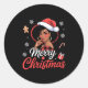 Black African Girl American Merry Christmas Santa Classic Round Sticker