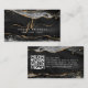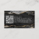 Modern, stylish professional business card with QR Code featuring black agate geode, marble and faux gold glitter veins and sparkle accents personalised with fancy signature style script monogram initials with swashes. CHANGES: Change the text font style, colour, size and placement in EDIT. ASSISTANCE: For help with design modification or personalisation or if you would like coordinating items, contact the designer BEFORE ORDERING via the Zazzle Chat MESSAGE tab or email makeitaboutyoustore@gmail.com.