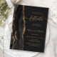 The left-hand edge of this elegant modern 50th anniversary party invitation features a black watercolor agate border trimmed with faux gold glitter. The customizable text combines gold-colored handwriting, copperplate and italic fonts on an off-black background.
