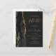 The left-hand edge of this elegant modern 50th anniversary party invitation features a black watercolor agate border trimmed with faux gold glitter. The customizable text combines gold-colored handwriting, copperplate and italic fonts on an off-black background.