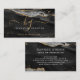 Black Agate Script Monogram Faux Gold Glitter Business Card