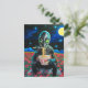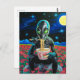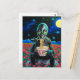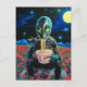 Black Alien Green Eyes Eating Noodles in Flowers Postcard
