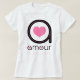 Love is one of the most beautiful words in the language. The same goes for the word "Amour" which means "Love" in French and is known internationally in most countries. It is the reason why we made this beautiful design for your women's white t-shirt. This artwork consists of a large black round "a" enhanced with a thin pink line, with a pink heart in the centre. Underneath, you will find the word "amour" printed in a trendy rounded black font. The "a" and the "o" have a pink heart in the centre. Finally, you will find a customisable name written in a very original red dotted font. Please, replace the default name with yours, or feel free to delete it.