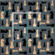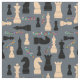 Silhouette images of chessmen of black and beige colour. Decorative colourful words: chess, check, checkmate, game, move, champion, winner, think. You can change the colour of the background. Funny and elegant chess design fabric.