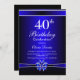 Start planning your 40th birthday party with this elegant black and blue 40th birthday party invitation.