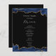Abstract Black and Blue Agate Menu. Faux gold foil. Script font highlights with easy to read serif name font. Easy to adjust for your own wedding needs. Make your own menu, use your own text to create an elegant yet cheap and affordable event menu. Easy to personalise. Custom menu paper sheets.