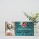 BLACK AND BLUE DAMASK Red Pink Ruby Monogram Holiday Card