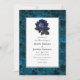 Halloween gothic wedding invitation featuring a blue rose and vintage skull patterns.