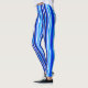 Light and dark blue, black, and white vertical painted stripes creates a beautiful and flattering pair of leggings.