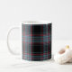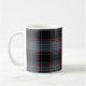 Coffee mug with a black, blue and red retro grunge plaid pattern.