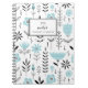 Whimsical and Scandinavian-inspired notebook. It features a black and blue floral pattern. Personalise by adding your name or short phrase. This floral notebook will be perfect as a personalised gift. Matching items are available.