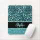 Black and Blue Teal Leopard Girly Glam Monogram Mouse Mat