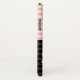 Elegant iPhone X case done in a blush on blush striped pattern, on the top half and a black on black striped pattern, on the bottom half of the case. Gorgeous graphics of blush coloured magnolia blooms decorate the bottom of the case. A black single letter monogram, on the top half of the case, is ready to personalise.