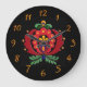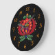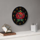 Hungarian folk art flower on black background. Clock with simple markers for number positions.Striking Hungarian design of brightly coloured flower against a black background. I took a traditional stylised flower pattern from a vintage embroidery template, then added colours and composed this folk styled Hungarian clockface. For those who love Old World decoration. A bold accent.
