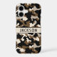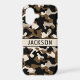 Customize this black and brown camouflage iPhone 17 case with your name in a trendy modern CAP font in black on cream. It's masculine and perfect for your favorite military, hunting, country or outdoorsman!