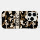 Customize this black and brown camouflage iPhone 16 pro case with your name in a trendy modern CAP font in black on cream. It's masculine and perfect for your favorite military, hunting, country or outdoorsman!