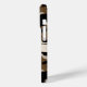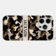 Customize this black and brown camouflage iPhone 15 pro case with your name in a trendy modern CAP font in black on cream. It's masculine and perfect for your favorite military, hunting, country or outdoorsman!
