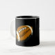 This cool mug features brown and white footballs flying through the air. Easily personalise the text for a special sports fan or remove entirely. Customise the dark background to the colour of your choice.