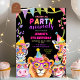 Black and Colourful Wild One Safari Animals Birthd Invitation