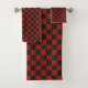Black and Deep red checkerboard pattern Bath Towel Set