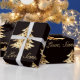 Black and Faux Gold Foil Christmas Tree Pattern Elegant Gift Wrapping Paper, with custom text