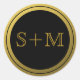 Black And Gold 2 Monogram Initial Classic Round Sticker
