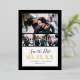 Save the date with a classy chic announcement card with real gold foil accents. This design has space for 4 engagement photos, bride and groom's names, wedding date or other custom text. Use the design tools to edit the text fonts and colours, add more photos and create a unique one of a kind save the date card!