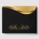 Elegant fiftieth wedding anniversary guest sign in book done in black with a gold swirl at the top and pretty golden flourishes, at the bottom. Personalise the golden tan custom text for your event or needs.