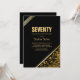 A modern sophisticated black and gold 70th birthday dinner party invitation.