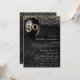 This custom invitation features a fabulous 50th birthday party theme. A large black balloon is placed on the left with "50" printed in a gold foil design. Gold glitter confetti accents the top and bottom portions. It's perfect for a birthday, anniversary, or other special occasion.