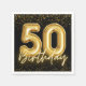 Cool and trendy black and gold 50th birthday party paper napkins with balloon numbers and sparkly typography.