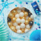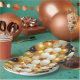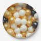 Pretty black, gold and white balloons and confetti paper plates that would be perfect for an anniversary, birthday or wedding party.
