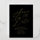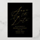 Announce your upcoming wedding in style with our Minimalist Calligraphy photo save the dates. The elegant save the date cards feature the words "Save the Date" in a gold foil script with your names, wedding date, & location featured below on a black background. The back of the save the dates features your favourite engagement photo.