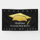 Announce to the world that your favourite grad has reached their milestone with this stunning, simple, modern, personalised banner. Bold, graphic, white typography and a faux gold foil cap icon overlay a black background. Personalise the custom text with your graduate’s name, mascot or school name, and class year. Choose from indoor or outdoor options. Matching invites, thank you cards, cap toppers, fans, napkins, plates and other graduation goodies are also available in this trendy and stylish collection. Guaranteed to preserve cherished memories of their special occasion!