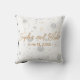 Adding a personal touch, the pillow features the couple's first names and the wedding date in luxurious gold writing. This customisation not only makes it a cherished keepsake but also adds a sophisticated touch to your wedding decorations. The gold text gleams brilliantly against the white background, enhancing the overall elegance and charm of the design.