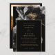 This elegant black and gold floral wedding invitation can be personalised with your information in modern typography and your wedding details on the reverse, along with your wedding website QR code and special photo. Designed by Thisisnotme©