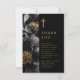This elegant black and gold floral Christian funeral thank you card can be personalised with your message in classic typography and a special photo on the reverse. Designed by Thisisnotme©