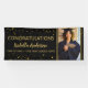 A festive graduation party banner with gold confetti on black background. Personalize with the young graduate name,photo,school/college name and year.