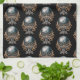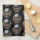 Black and Gold Crystal Ball Pattern Halloween Tea Towel