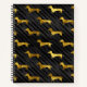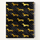 Cute dachshund pattern with black textured background and gold wiener dogs.