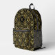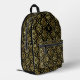 Black And Gold Damask Pattern Monogram Printed Backpack