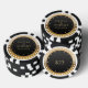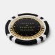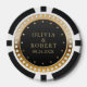 White diamonds with black and gold wedding poker chips are designed with custom names, dates, and dollar amounts.