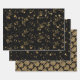 Elegant black and gold Valentine wrapping paper. This set contains three sheets of wrapping paper with a black background and gold heart patterns, for a touch of class.