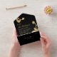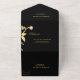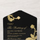 Stylish formal romantic floral botanical gold and black wedding invitation with RSVP with meal options card included featuring a formal elegant calligraphy script and line art style floral branches with foliage. +++++++++ Easy to personalise with your details and with pre-printed individual guest name/s and address.