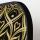 This stylish black and gold monogrammed pickleball paddle features an elegant mandala design pattern with the template text for your initial letter and name. It's a unique gift idea for her for birthdays, Christmas or other occasions, especially if she also loves to practice yoga and meditations.