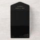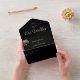This modern simple black and gold botanical wedding All in One Invitation features beautiful Monstera gold leaves on elegant black background and solid black backing. For matching products please visit our collection.