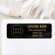 Black and gold elegant professional return address label with template fields for name, company name/title, logo (photo or other graphic) and contact information. You can customise the text size, font and colour to suit your own personal preference.